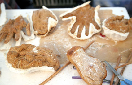 Hand in Hand I was invited to create an interactive installation and performance for the Flavas festival in Peckham Square, Throughout the day, I cast people’s hands in bread, baking them on site, and used these to create an installation, which developed during the day. The hands ‘grew’ from a carpet of grass and at the end of the day, we held a mass hand eating performance where everyone got the chance to eat their own hand. |